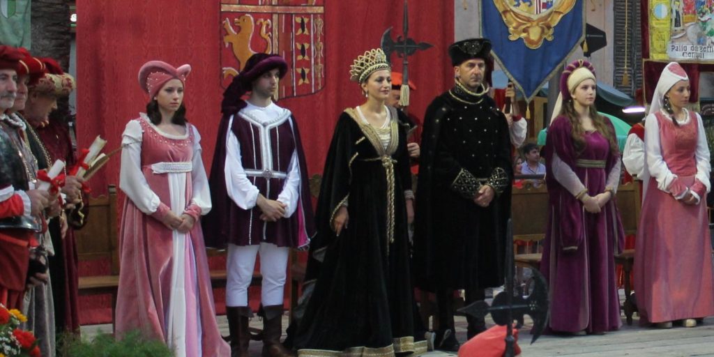 Sappiamo storicamente che nel 1498 tale “Ludo” si svolse a margine della Festività di Pentecoste, a cui presero parte i feudatari dell’epoca: il Duca Andrea Matteo III e la Duchessa Isabella Piccolomini D’Aragona, presenza che solennizzò l’insediamento nell’Abbazia di S. Maria di Mejulano dei Monaci Celestini.